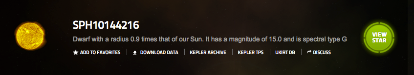 With the Kepler extended mission in full swing, we have added some new data to the source pages to help your investigations. If you don’t know what a source page is, it’s where we show all the light curve data for a given Kepler target that we have uploaded on the Planet Hunters website as you would see it in the main classification interface. We show roughly 30 day light curve segments in the main Planet Hunters classification interface, so on the source pages you can peruse the other light curve sections. In addition the source page is the place where you can get the Kepler ID of your favorite star and look up other information about the Kepler source.