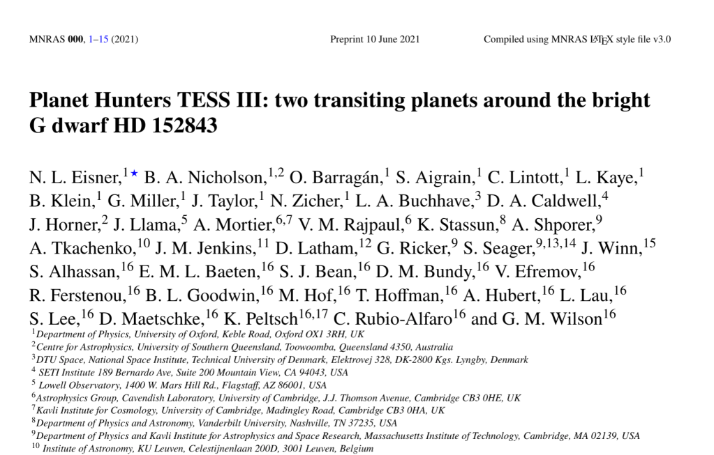 Last but not least this system is interesting because it was discovered by you! With this find you have once again shown that with visual vetting we are able to detect exciting planet systems that the automated computer algorithms struggled to find. Thank you to everyone who helps out with the search for distant worlds on Planet Hunters TESS and who help to further our understanding of our Galaxy. A special thanks also to Safaa Alhassan, Elisabeth M. L. Baeten, Stewart J. Bean, David M. Bundy, Vitaly Efremov, Richard Ferstenou, Brian L. Goodwin, Michelle Hof, Tony Hoffman, Alexander Hubert, Lily Lau, Sam Lee, David Maetschke, Klaus Peltsch, Cesar Rubio-Alfaro, Gary M. Wilson who are now coauthors of the discovery paper.