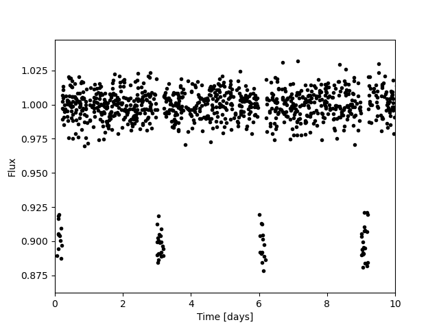 Figure 3: Simulated full light curve with 3-day period transiting object