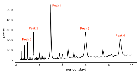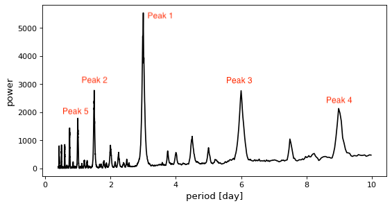 As we can see, the algorithm has picked out the strongest signal at a period of 3 days, just as we expected as this is the true period of the signal I injected. We also see peaks (of decreasing power) around 1.5 days, 6 days, 9 days and 1 day. You may notice that these are all multiples or fractions of the true period. We refer to these as period aliases and it’s expected that they will produce peaks in the BLS periodogram. Sometimes these can even be the true period of a signal, which leads us to our next metadata field.