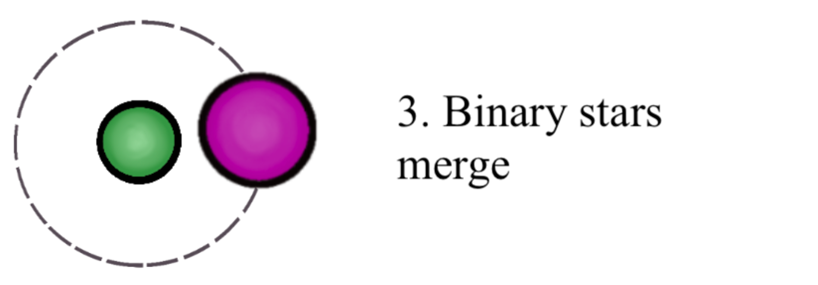 Which could mean that the two binary stars (the blue and yellow ones) could merge to become one star: