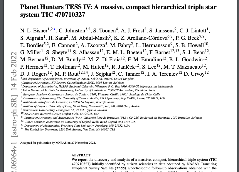 Exciting news alert! The Planet Hunters TESS community has helped identify another exciting system, this time comprised of zero planets and three stars. ‘Why is this a Planet Hunters TESS discovery?’ you may ask. Well, thirty thousand pairs of eyes visually looking at data collected by NASA’s Transiting Exoplanet Survey Satellite leads to many exciting discoveries- including asteroids, supernova, eclipsing binaries and multi-stellar systems – all of which have nothing to do with planets at all but are equally exciting! Our latest discovery is now available at https://arxiv.org/abs/2202.06964.