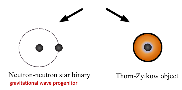 This brings us to the final and exciting stage in the evolution of this system! The former binary system (green) will also likely end its life by undergoing supernova and becoming a neutron star, which would leave us with a neutron-neutron star binary, which could eventually merge to cause a gravitational wave! Alternatively, the (first) neutron star could be completely engulfed by the other star, resulting in an exotic object called a Thorn-Zytkow object!! Either way, there’s an exciting future ahead of this system so stay tuned for the next couple of millions of years!