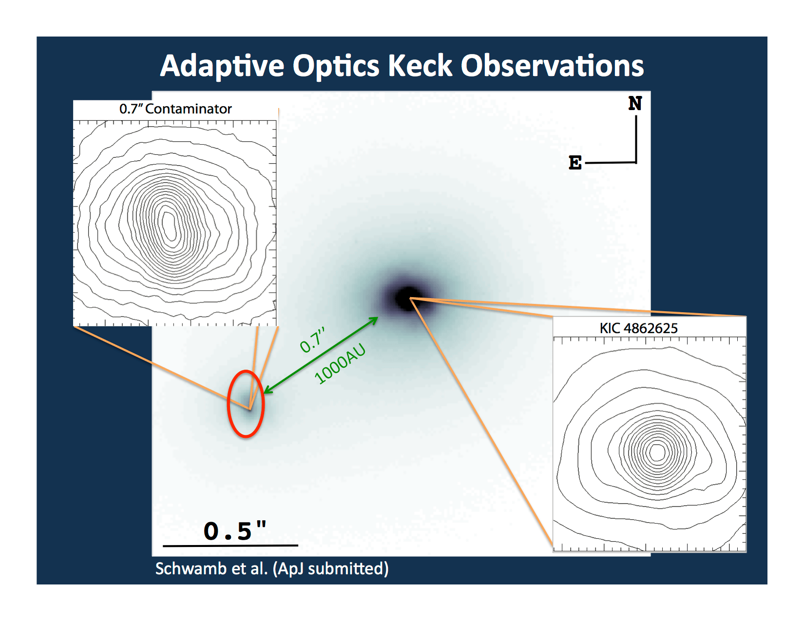 This is something the Kepler mission always had to deal with and there are some observational checks and data tests that can help determine whether the transit-like signal is likely coming from the actual Kepler target star. You can take follow-up observations like we did for PH1 b and PH2 b using telescopes with adaptive optics that minimize the blurring effects of the Earth’s atmosphere to zoom in around the Kepler target star to look for contaminating stars. Also you can look for shifts in the position of the brightest pixel during and before and after a transit which signals the transit signal isn’t coming from the primary Kepler target star. Also you can look at the individual pixel by pixel light curves from Kepler (Kepler reads out a subimage around each target star and a small number of those pixels get added together to make the Kepler light curve)and see if the transit signal or eclipsing binary signal is present in every pixel or if you see say an eclipsing binary signal in one pixel making the light curve and in pixels near by around a different star. Here’s an example from some of the Planet Hunters volunteers who examined to see if an eclipsing binary was contaminating a light curve.