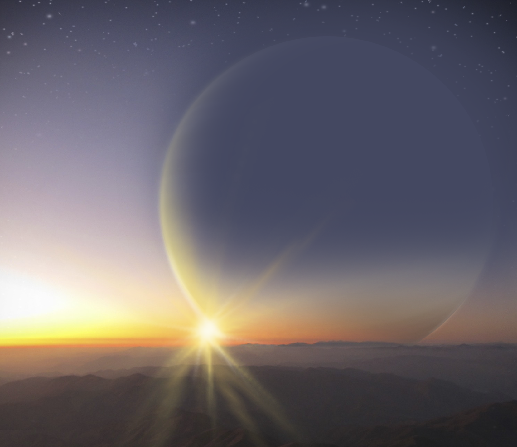 from the perspective of an imagined Earthlike moon orbiting the giant planet, PH2 b. Image Credit: H. Giguere, M. Giguere/Yale University