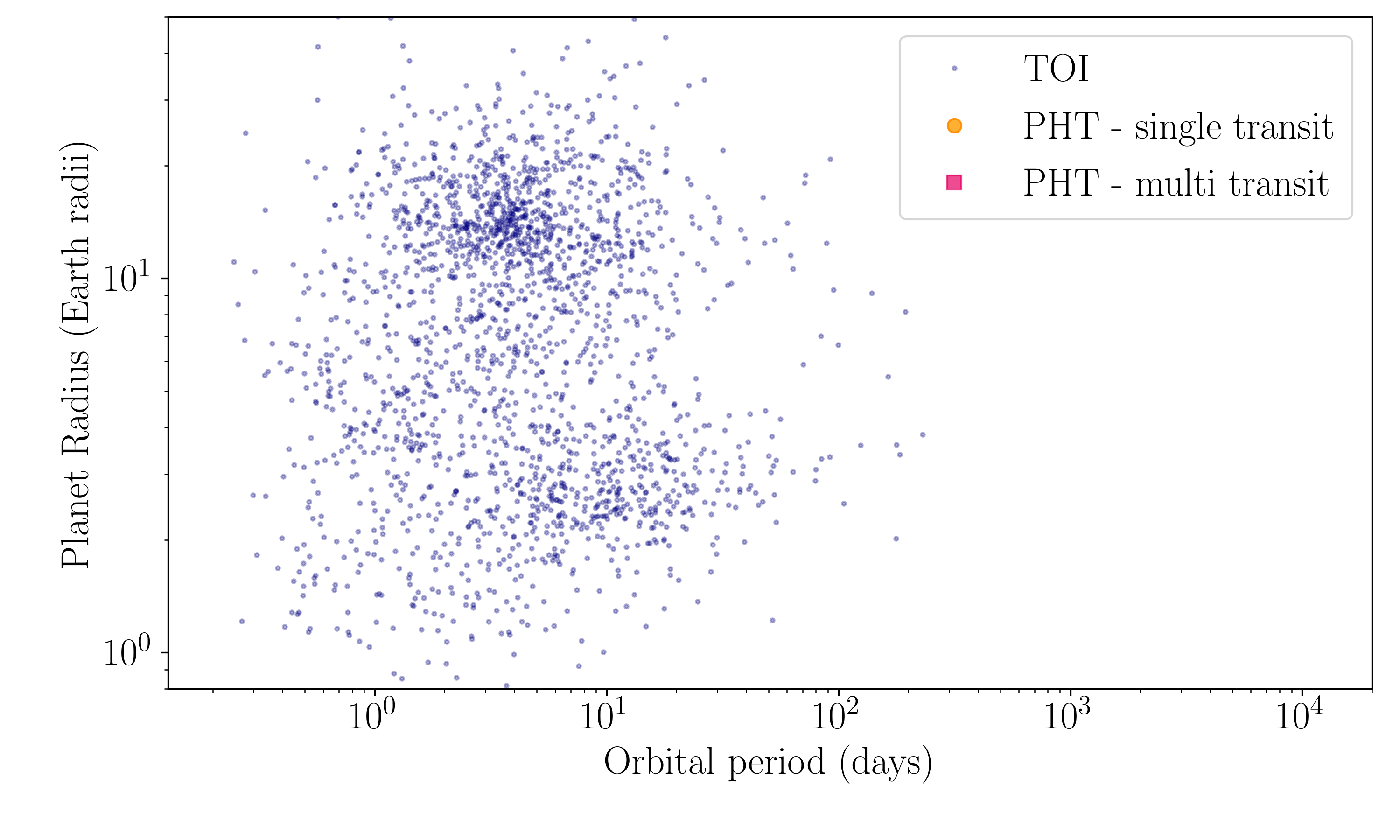 You can see that in the figure below, where the orange and pink points show the PHT candidates, and the blue points show the automated pipeline found Tess Objects of Interest (TOIs). The figure highlights that the planets identified with PHT tend to have longer orbital periods than the TOIs, and therefore allowing us to study the characteristics of a different ‘set’ of planets, and maybe even of planets that are more similar to the planets within our own solar system.