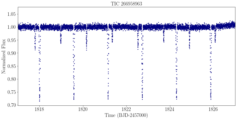 The majority (81%) of the planet candidates outlined in the paper only exhibit a single transit event in the TESS lightcurve, meaning that they tend to have longer orbital periods (where the orbital period corresponds to the duration of a ‘year’ on this planet) than the average duration of the planets found by the TESS automated algorithms. This is because automated pipelines often require two or more transit events in order to be able to detect the signal. However, with visual vetting, we are equally sensitive to a single transit event as we are to planets that transit multiple times within the duration of one light curve.