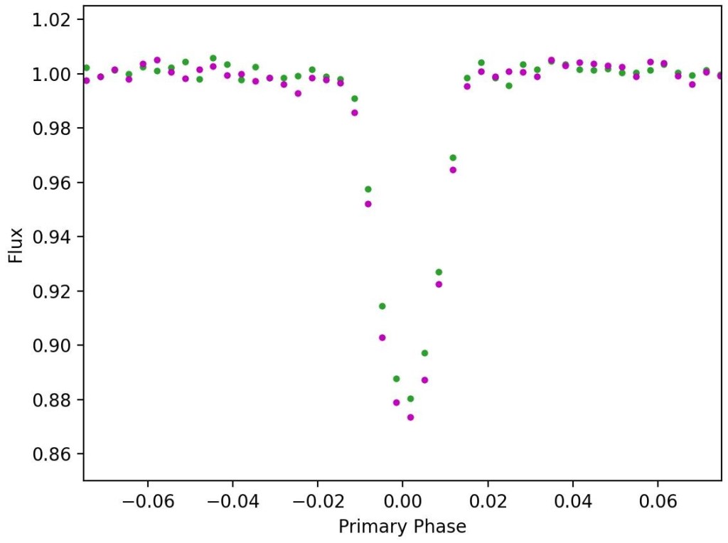 And there it is! Two big dips in the intensity indicating that we in fact are looking at two stars orbiting one another! In Part 2 I’ll talk more about what we learned about this system and why we didn’t spot it sooner!